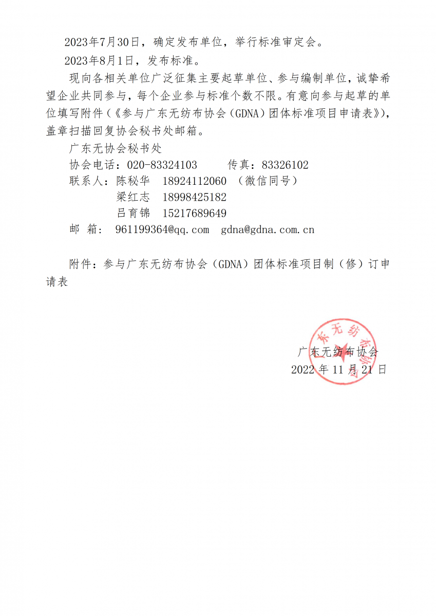 关于征集参与编写《纺粘法非织造布企业消防系统安全指南》、《纺粘法非织造布企业设备安全防护标准》、《纺粘法非织造布企业导热油炉安全使用指南》三个团体标准单位的函